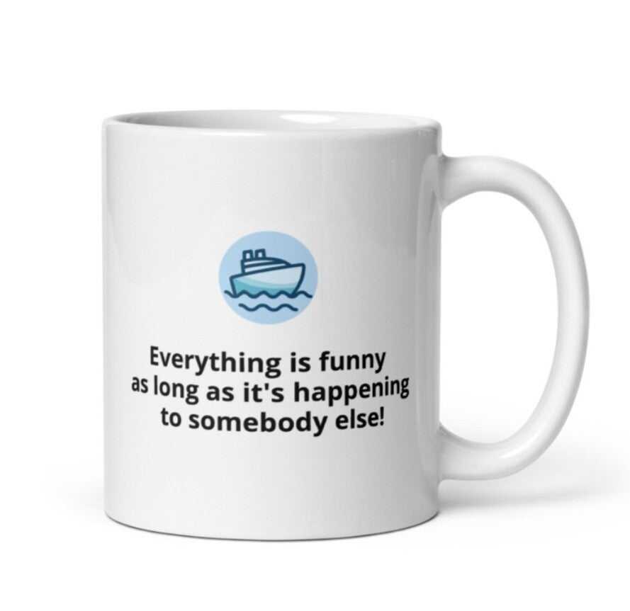 This is an mug with the quote everything is funny as long as it's happening to somebody else!